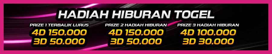 - Hadiah prize 3 : 4D = Rp. 100.000,- / 3D = Rp. 30.000,-